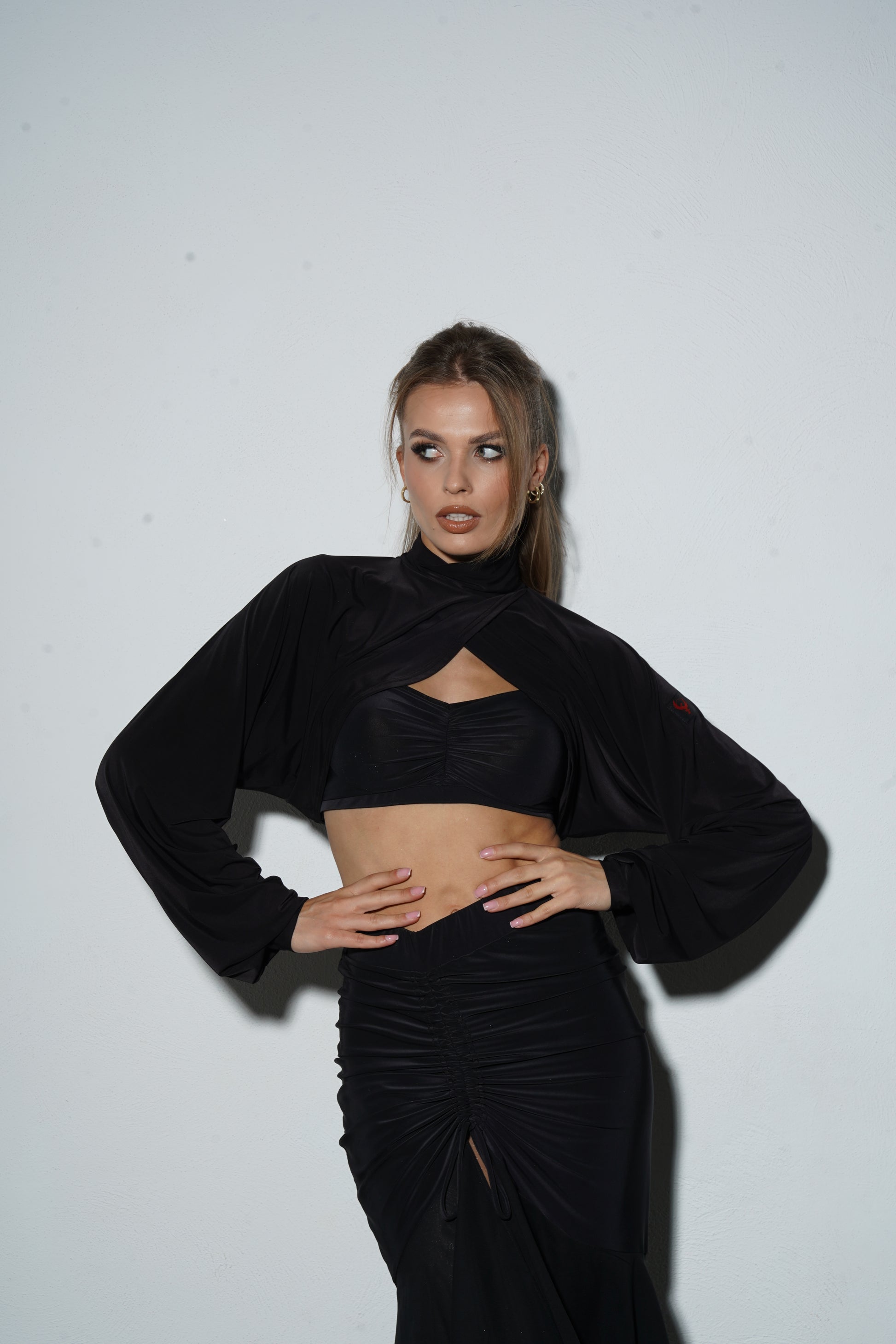 The short bolero NOIR is a perfect choice for people who appreciate modern style with a touch of elegance. Thanks to long, loose sleeves and an interesting cut, Bolero will perfectly add character to any styling. It goes perfectly with elegant skirts and trousers.