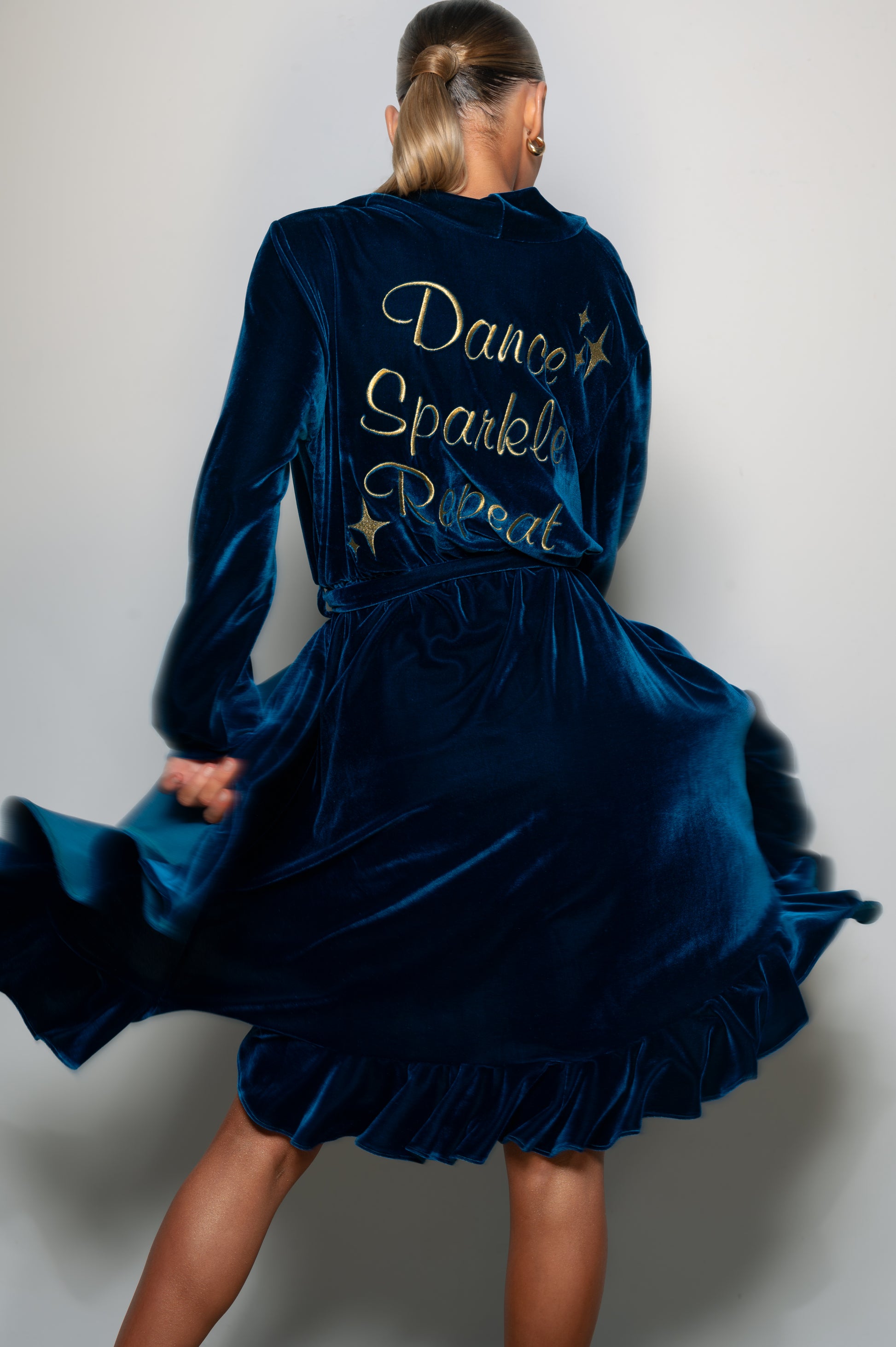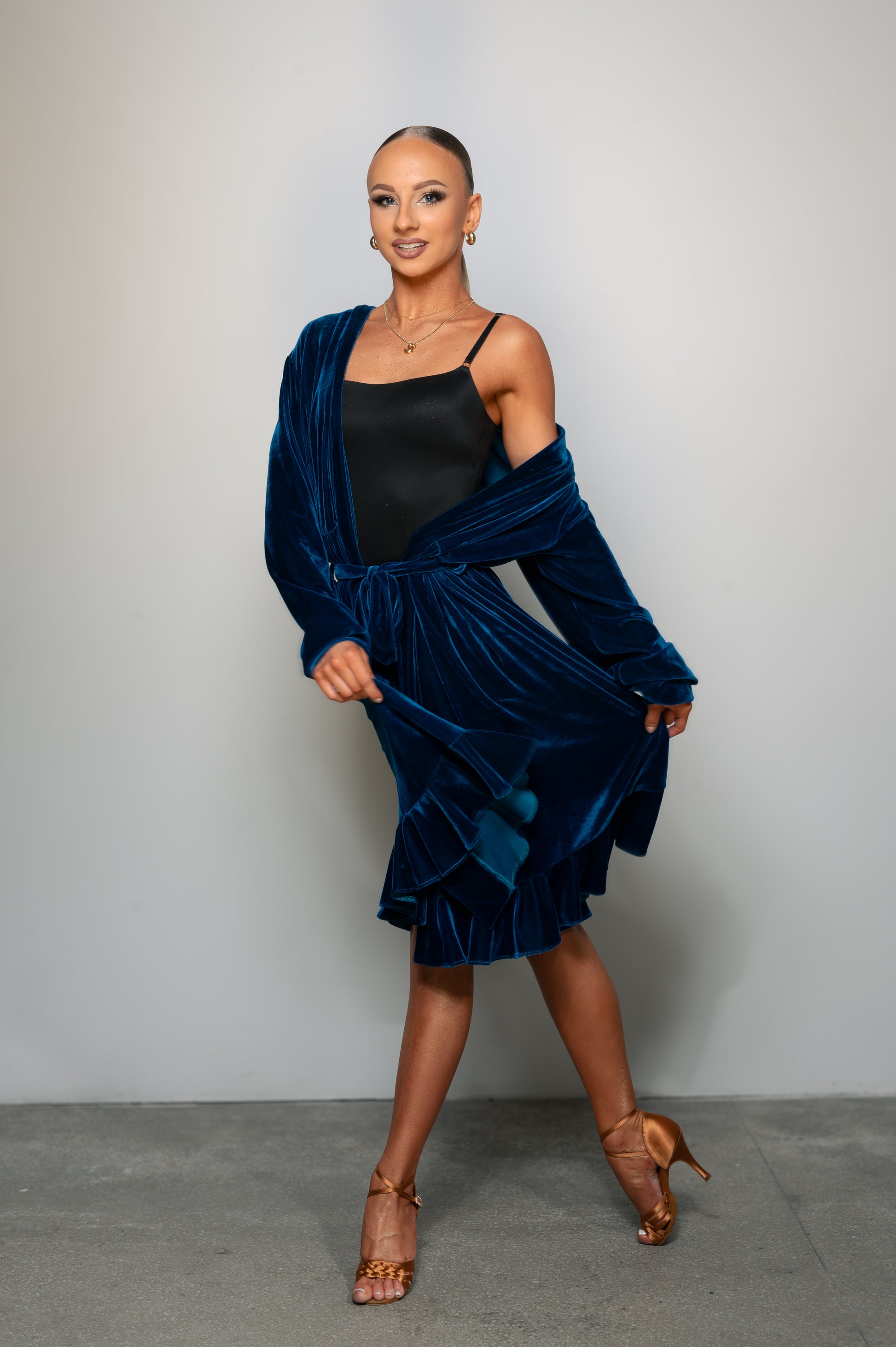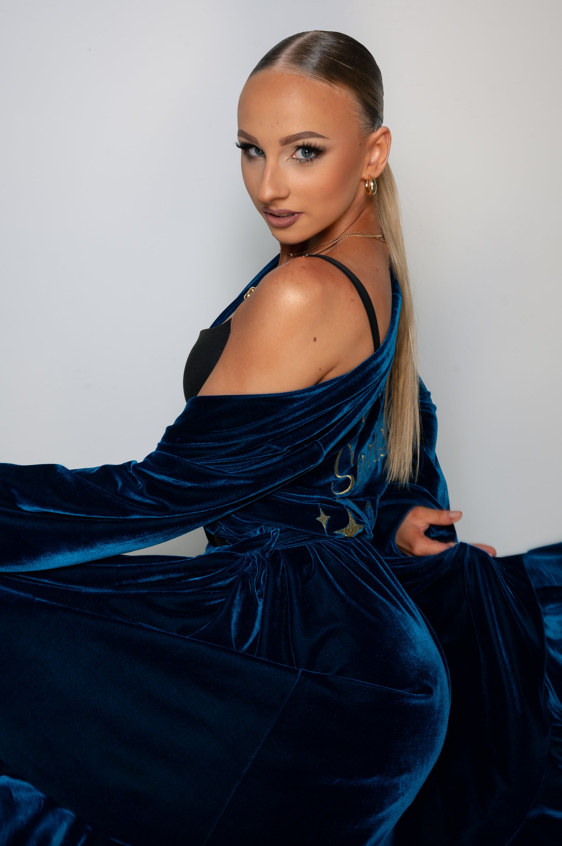Elegance, softness and sophistication - the Fleur dressing gown is the epitome of class and style. Made of luxurious, deep velvet, which beautifully envelops the silhouette, providing comfort and grace. Subtle ruffles give it lightness, and the waist tie allows for a perfect fit. The perfect choice for moments of relaxation before or after dancing, when you want to feel like a real star