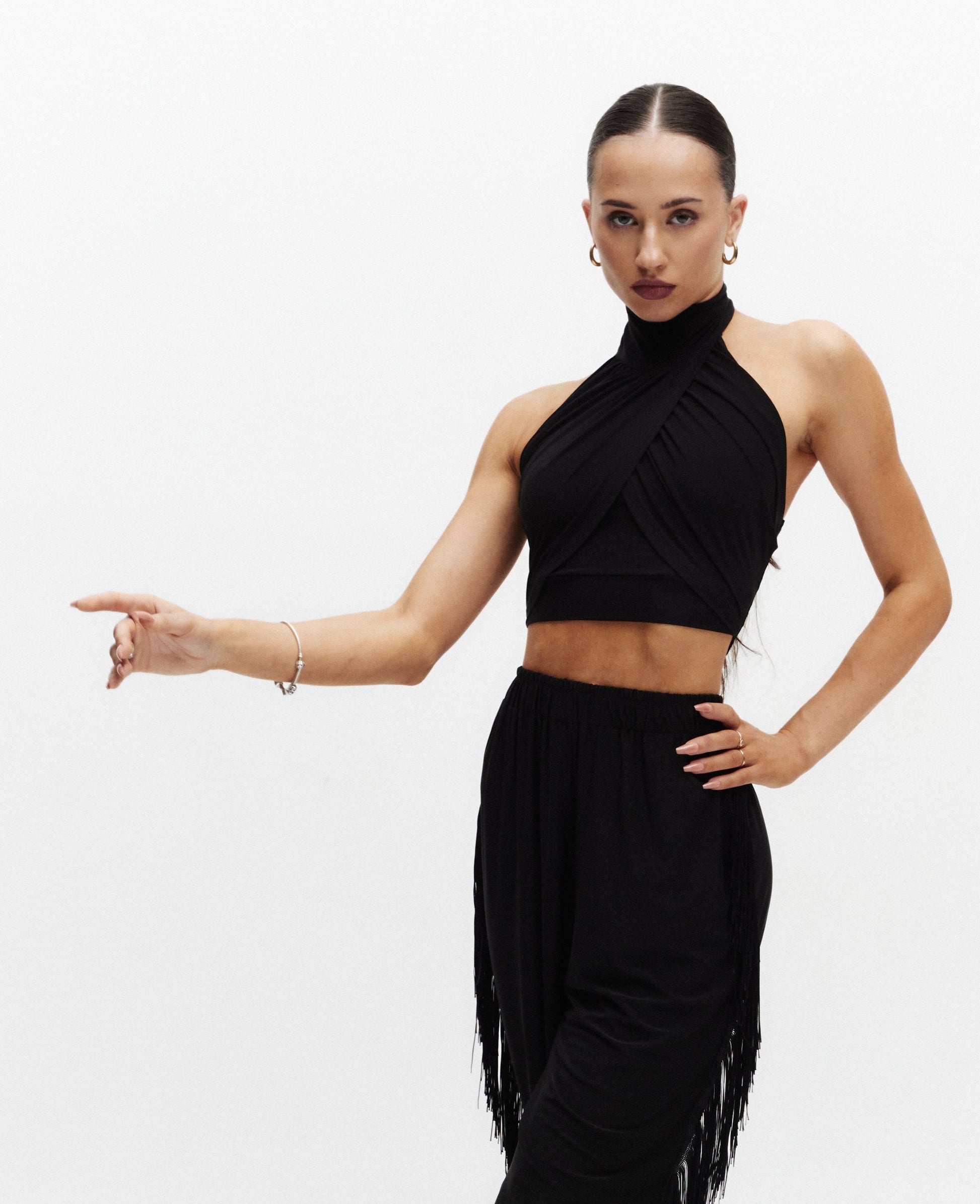 This top is the perfect choice for all inspiring dancers who want to add unique style and striking details to their dance outfit.