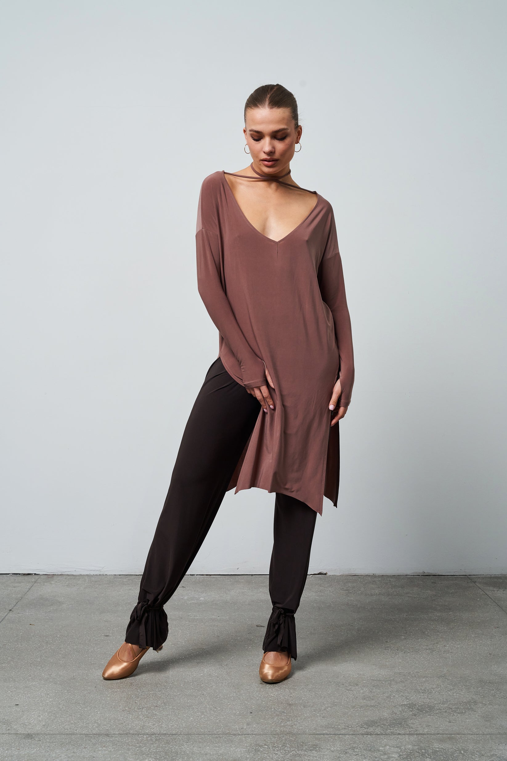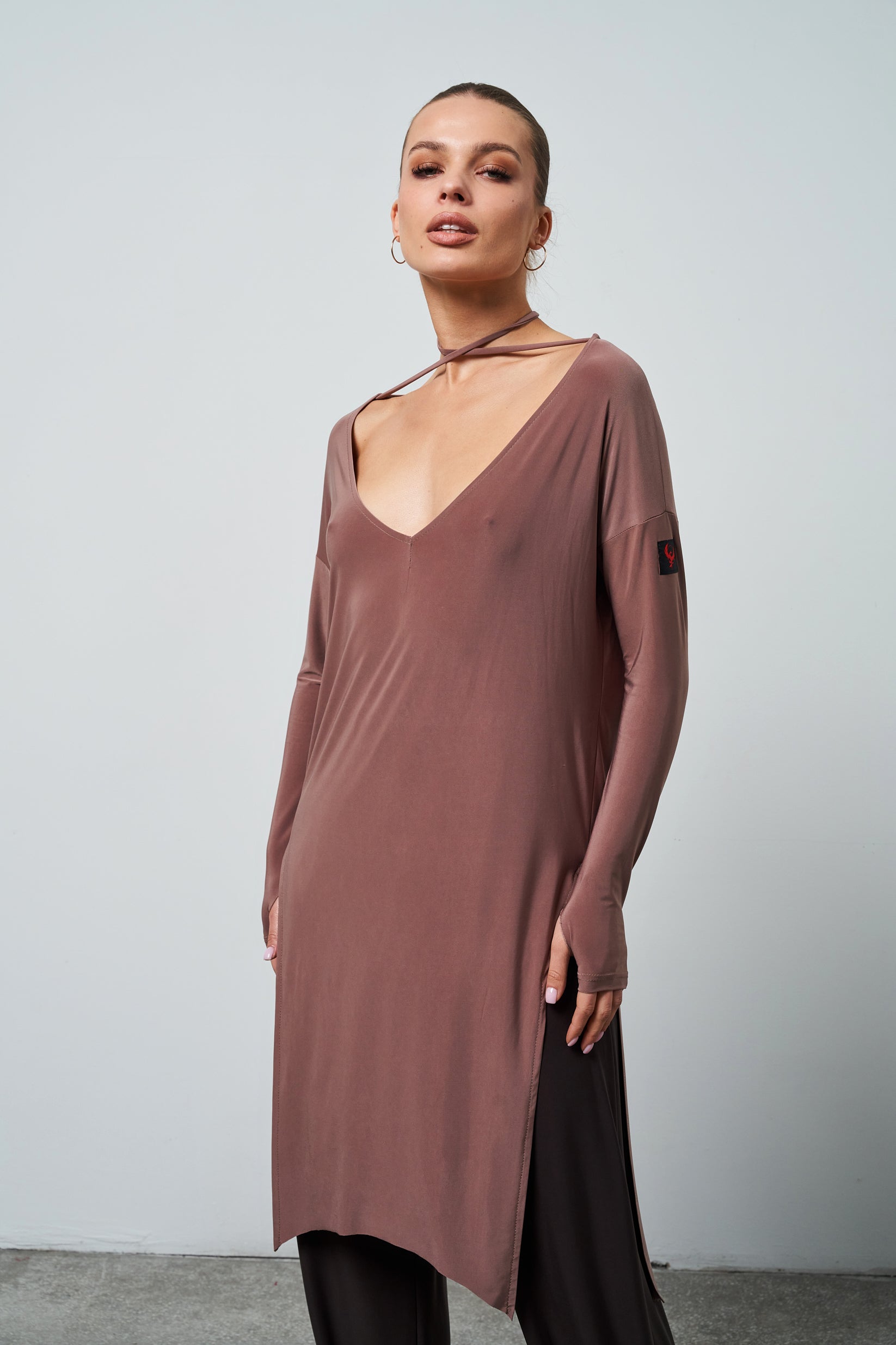 The Nadia tunic combines minimalist elegance with everyday comfort. Its unique cut and delicate material make it an ideal choice for both casual outings and more elegant occasions.